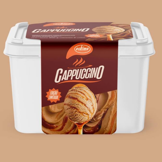 Sorvete sabor capuccino, mesclado com caramelo e cookies. Contém aromatizante sintético idéntico ao natural. Colorido artificialmente.