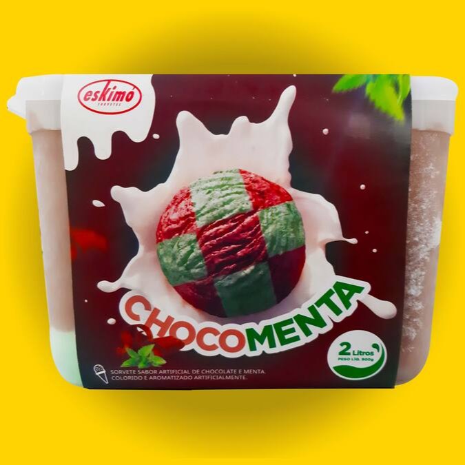 Sorvete sabor artificial de chocolate e Menta. Colorido e aromatizado artificialmente.