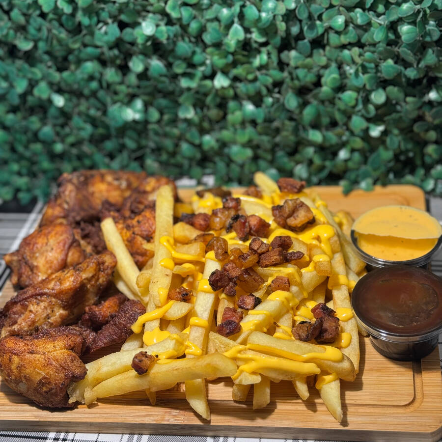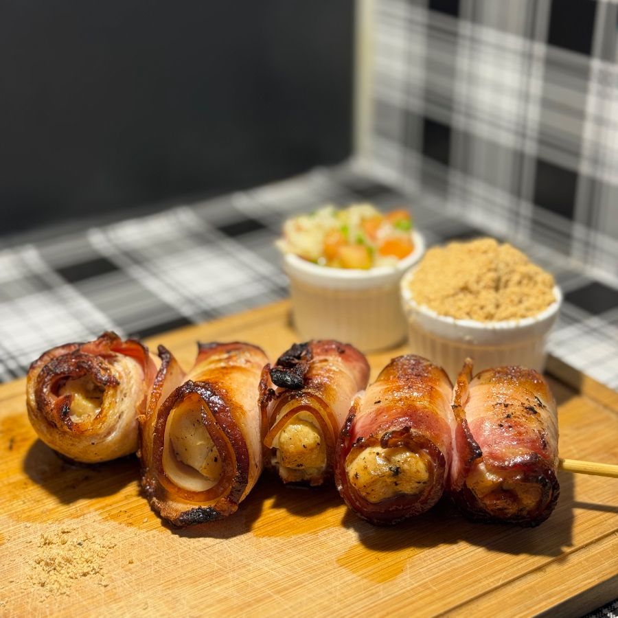 Pedacinhos de frango a passarinho bem temperados, fritos até ficarem crocantes por fora e suculentos por dentro. Finalizados com uma camada generosa de cheddar cremoso e cubos de bacon crocante que dão o toque perfeito. Uma explosão de sabor que combina textura, cremosidade e aquele “defumadinho” do bacon que faz toda diferença!