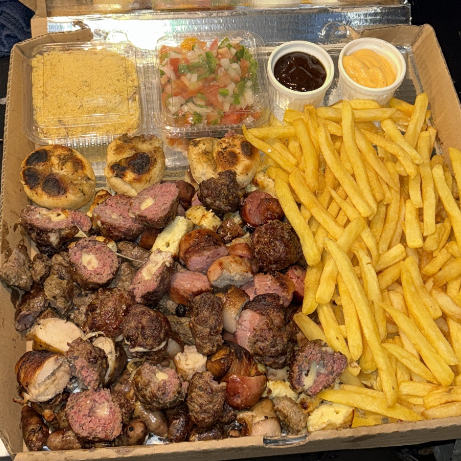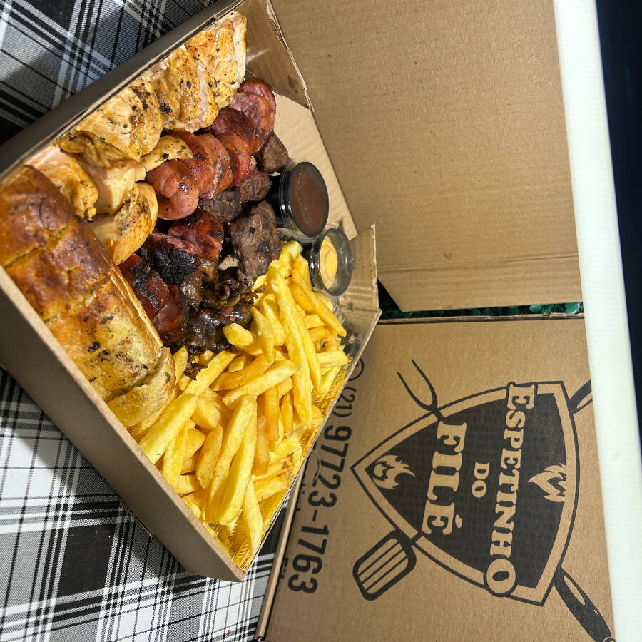 Combo Exagerado Do Filé – O combo perfeito para matar a fome de verdade! Inclui: 15 espetos da sua escolha 500g de batata frita crocante 150g de vinagrete caseiro 150g de farofa crocante 2 sobremesas deliciosas 1 refrigerante 1,5l grátis Ideal para compartilhar com a galera ou curtir uma refeição completa e saborosa!