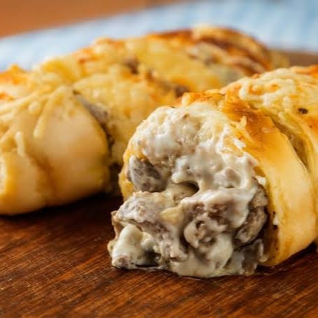 Delicie-se com nosso Pão de Alho Recheado com Filé Mignon! Uma baguete crocante e dourada, recheada com filé mignon macio e temperado, envolto em um irresistível molho de alho.