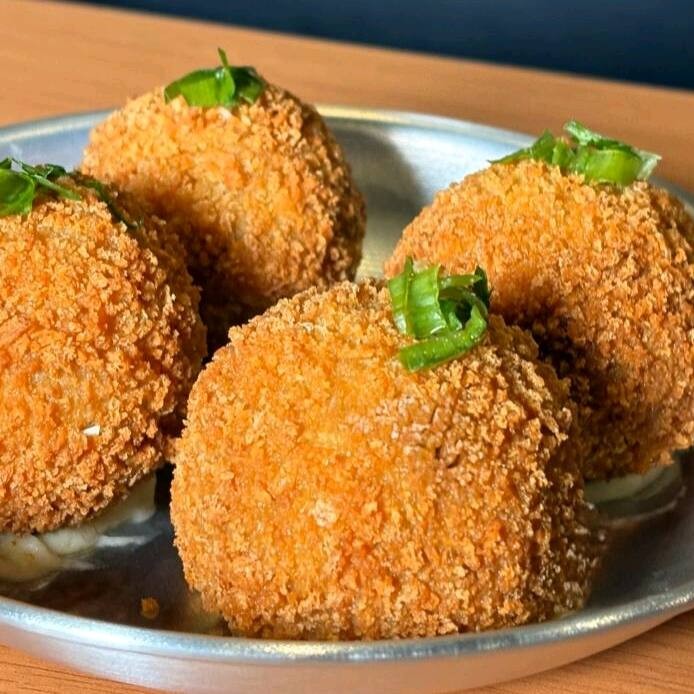 Porção de 4 bolinhos de costela desfiada, acompanhada de queijo, devidamente temperada e empanada com crocância.