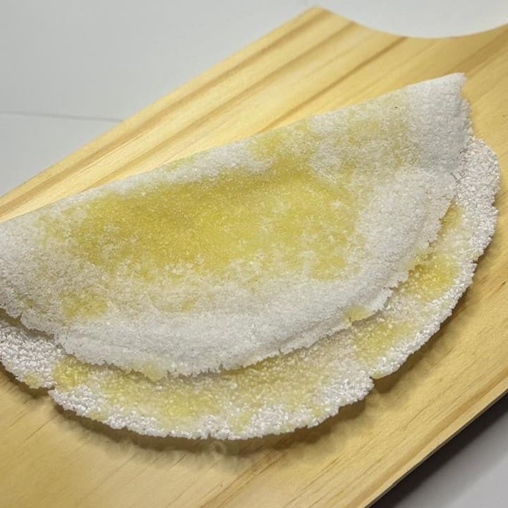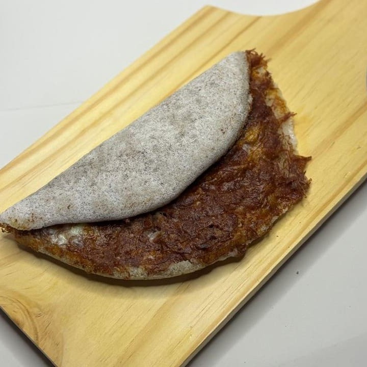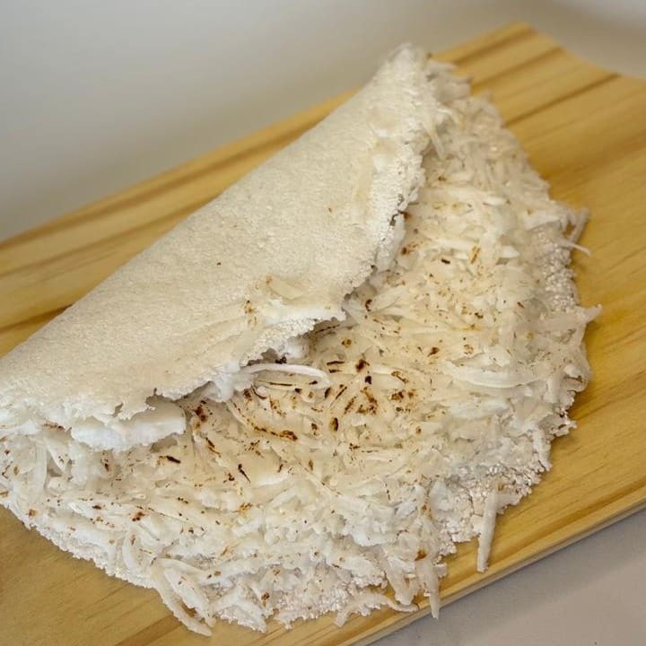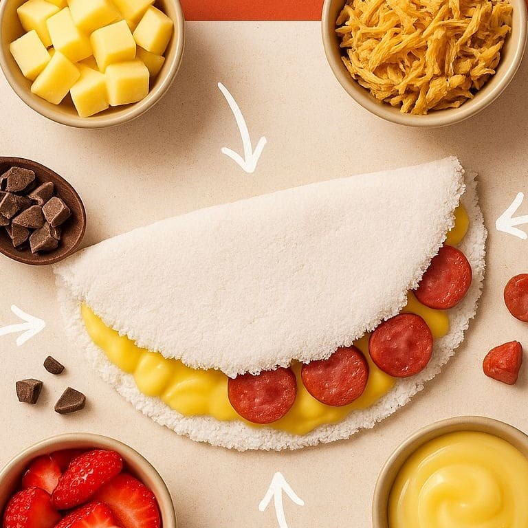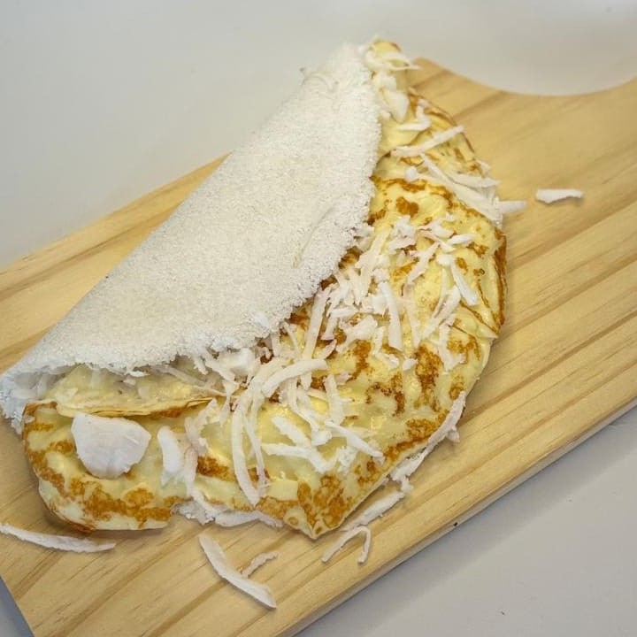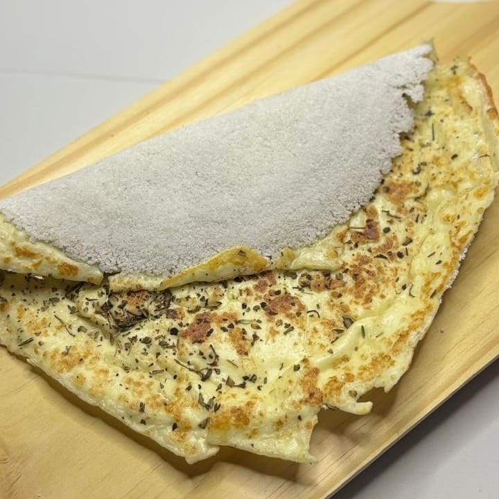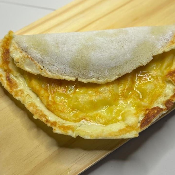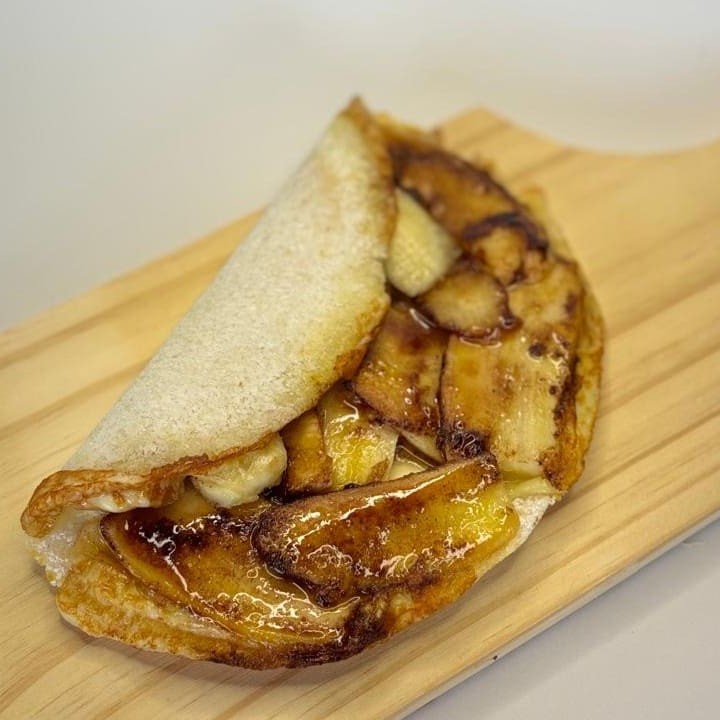 Recheada com queijo de sua preferência, banana, açúcar e canela.