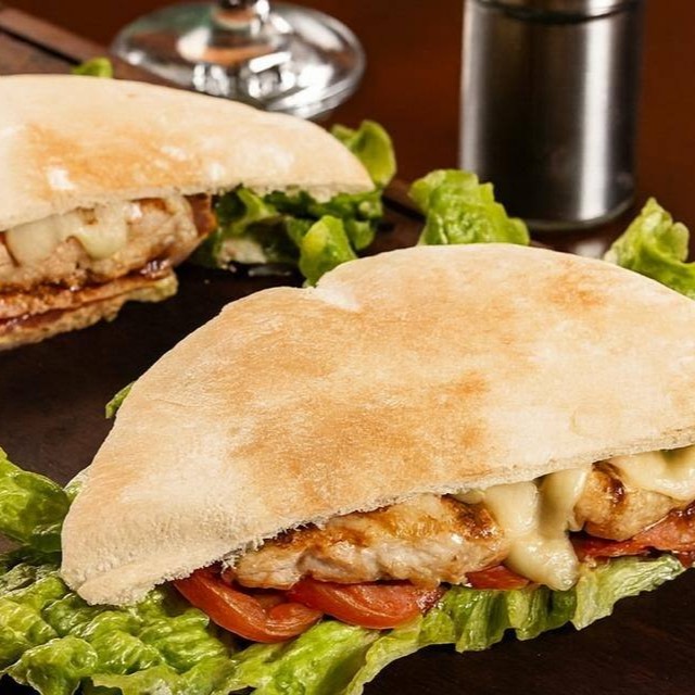 Saboroso sanduíche feito com pão sírio, frango grelhado, deliciosa muçarela, saladinha fresca de tomate e alface e maionese verde cremosa. __#hambúrguer #lanches #lasanha #sanduíche #fritas #esfirras #Soda #milkshake