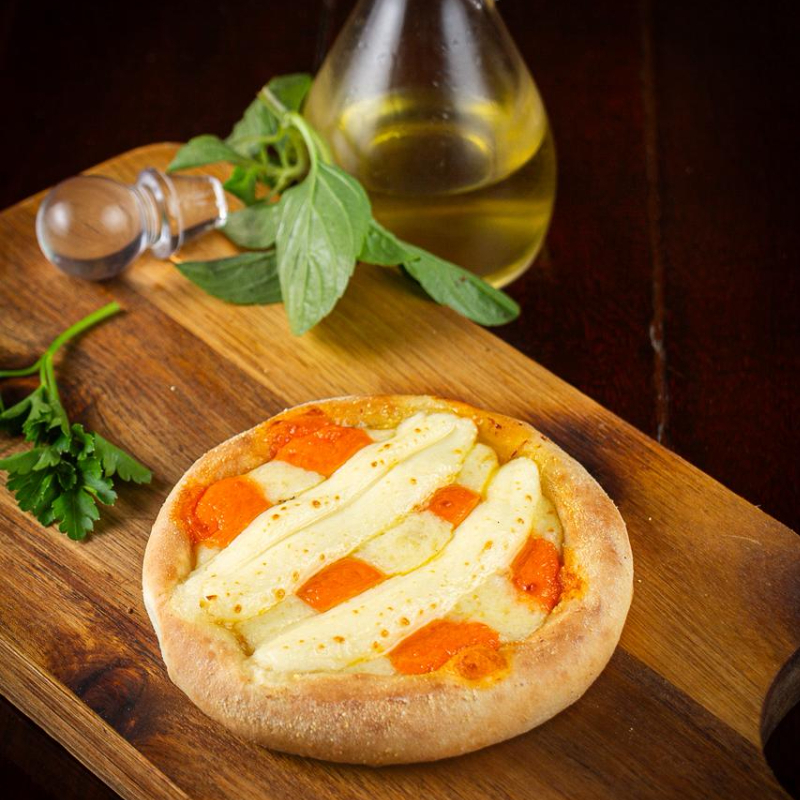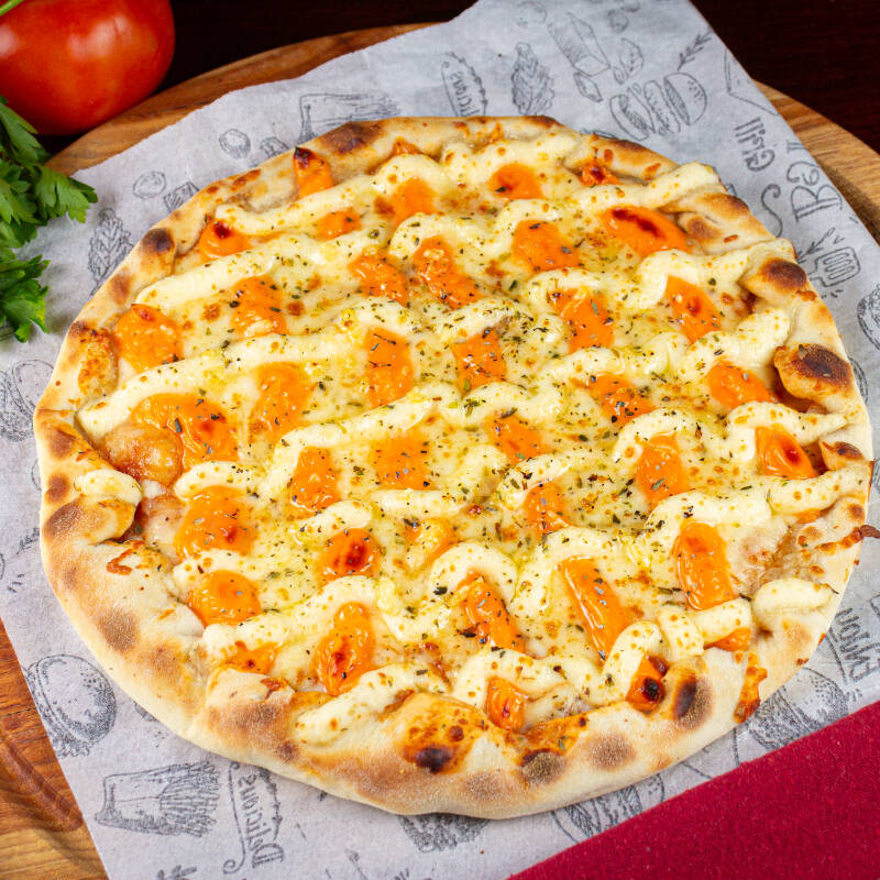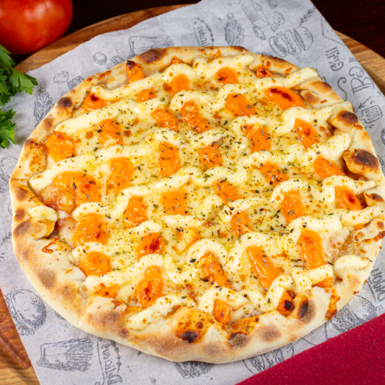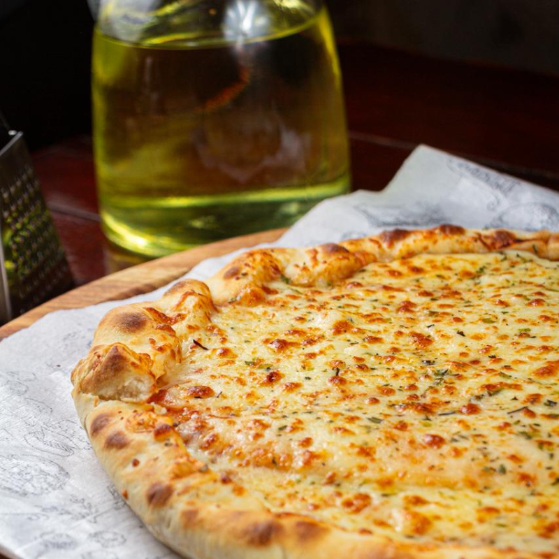Mussarela, cheddar, catupiry, provolone, orégano e azeitona.