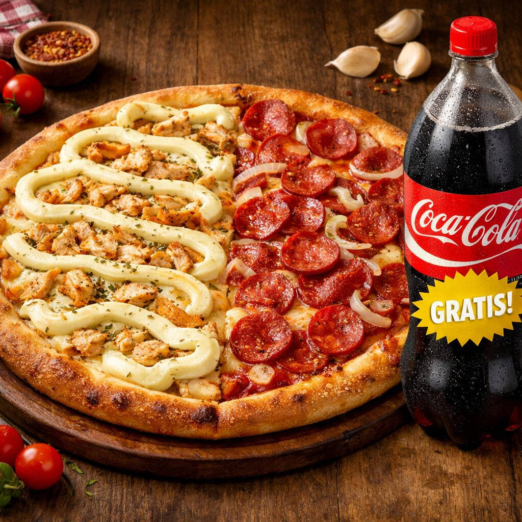 Pizza 45 Cm Frango Com Catupiry E Calabresa + Coca Cola 2 Litros
