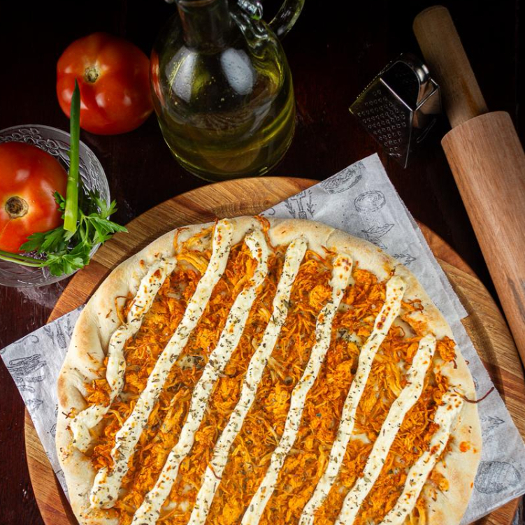 Molho, mussarela, Frango, catupiry, orégano e azeitona