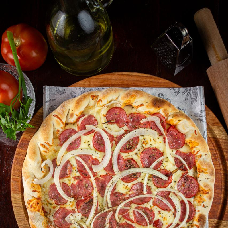 Molho, Mussarela, calabresa, cebola, orégano, azeitona