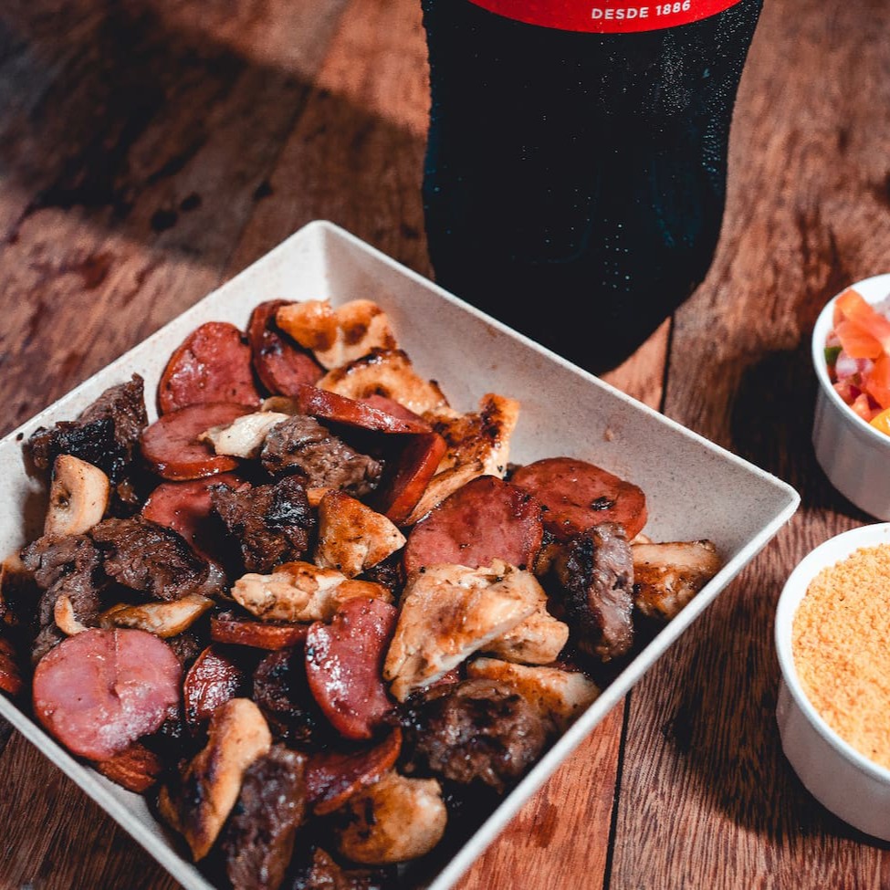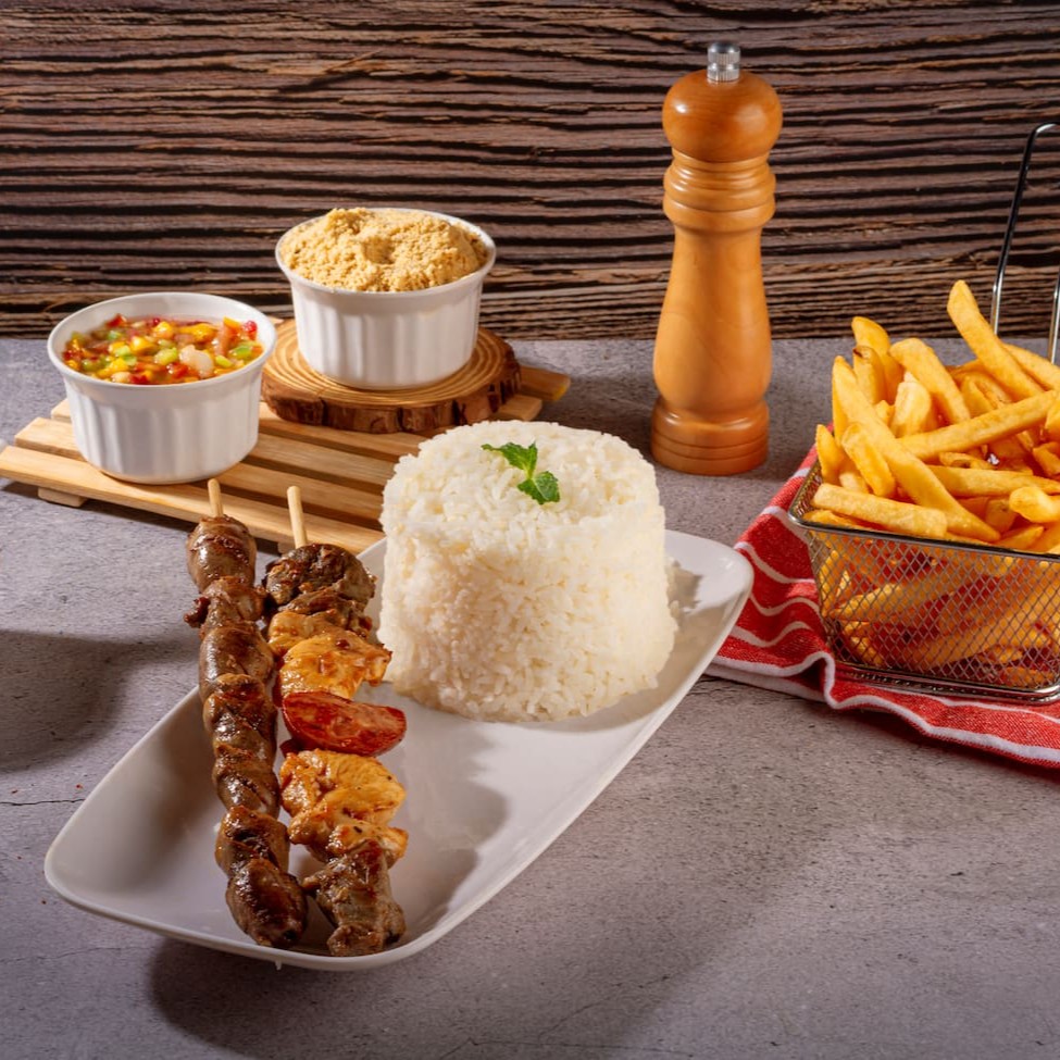 Churrasco Misto Com Arroz, Batata Frita, Molho Vinagrete E Farofa