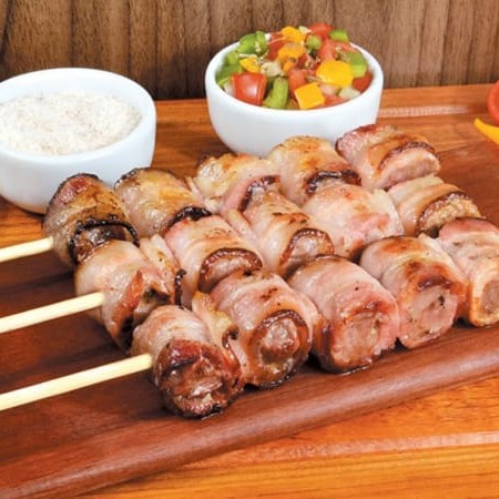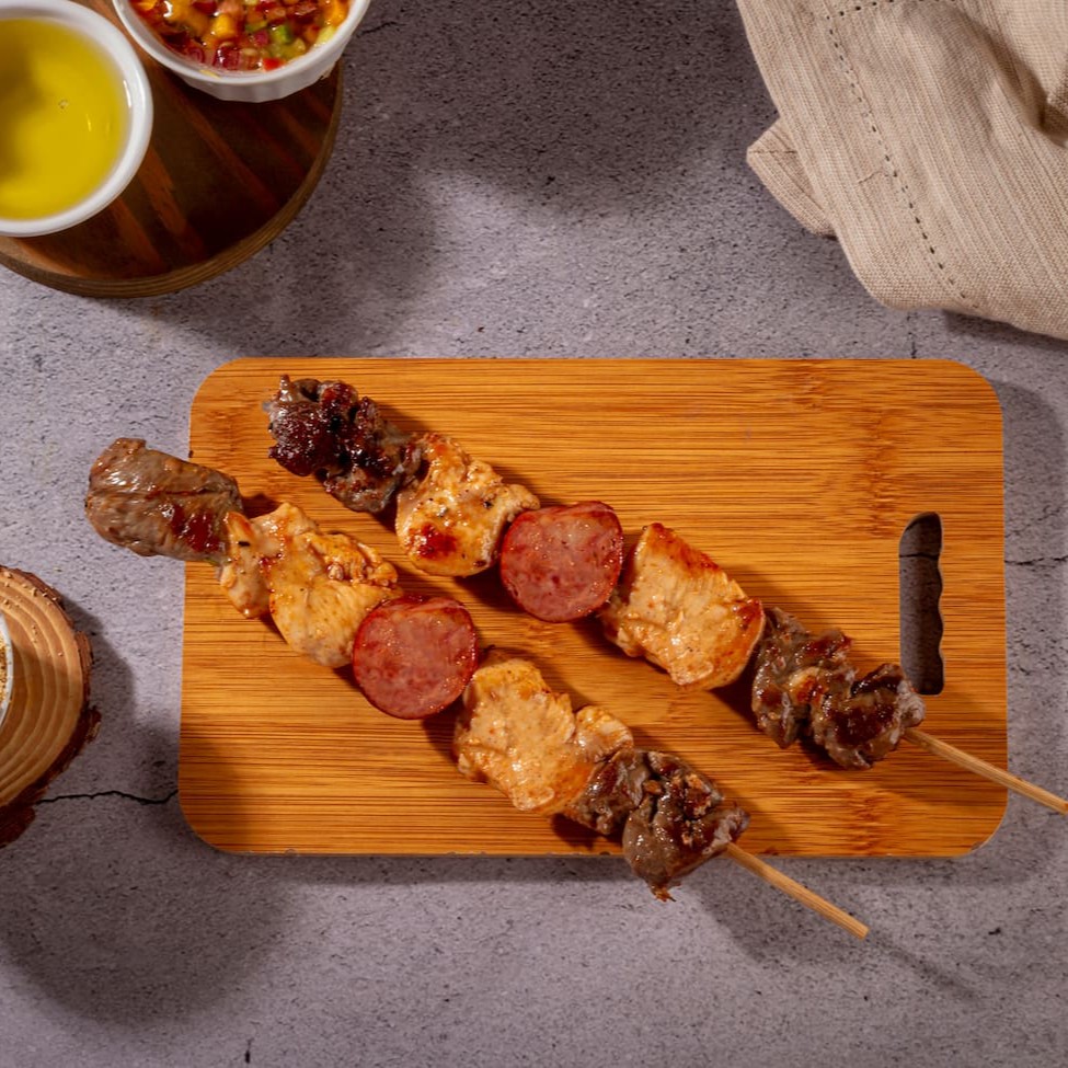 Desfrute da deliciosa combinação do nosso Espetinho Misto, que reúne frango suculento, carne bovina macia e calabresa saborosa. Perfeito para quem aprecia a variedade em um único espetinho, é ideal para os amantes de churrasco que querem experimentar um pouco de cada sabor.