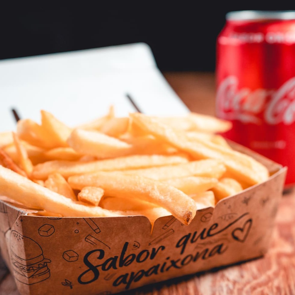 Porção de batata frita na hora, quentinha e deliciosa. Crocante por fora, macia por dentro. Acompanhamento perfeito para qualquer refeição.