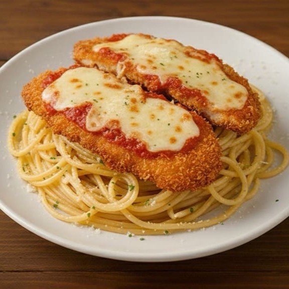 Macarrão Com Tiras De Frango Parmegiana