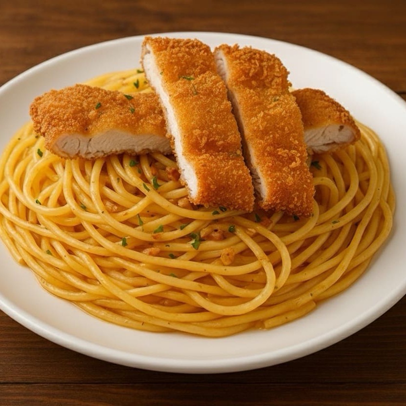 Macarrão Com Tiras De Frango Empanado