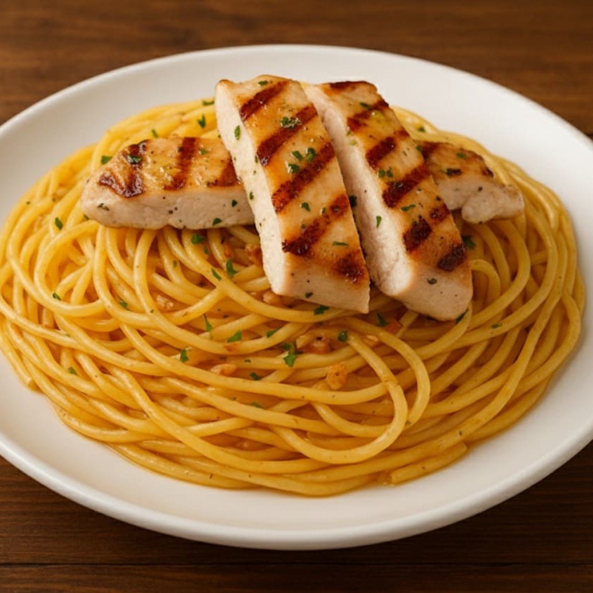 Macarrão Com Tiras De Frango Grelhado