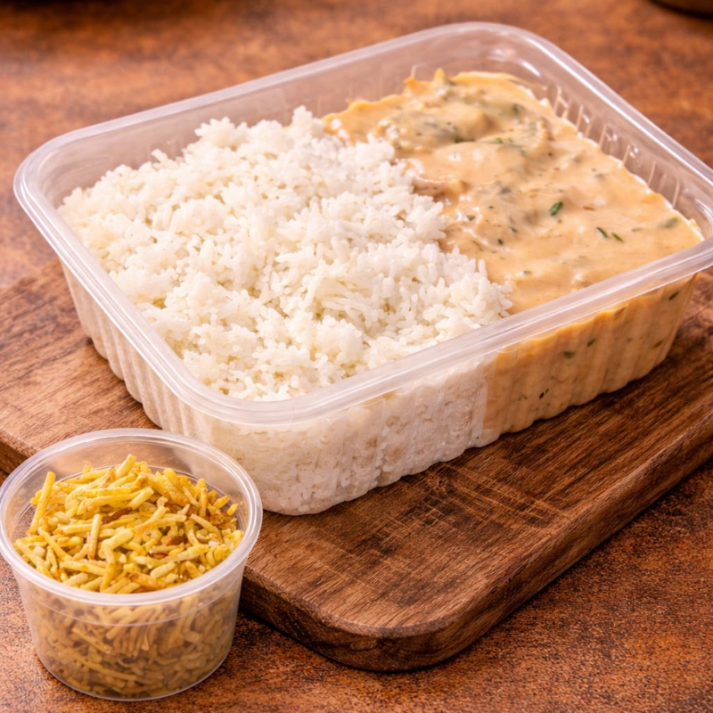 Escolha entre frango, carne ou camarão em um molho cremoso e cheio de sabor. Acompanha arroz, batata palha. Perfeito para uma refeição completa, saborosa e bem servida!