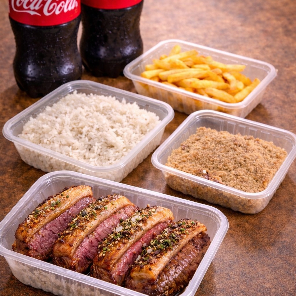 4 bifes de picanha suculenta, grelhados na medida certa, com aquele sabor típico. Acompanha 3 acompanhamentos à sua escolha + 2 bebidas para completar a refeição. Perfeito para dividir e aproveitar um churrasco saboroso e bem servido!