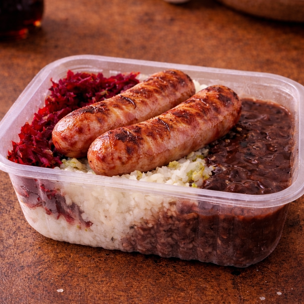 2 linguiças toscanas, perfeitas para saborear a qualquer momento. Acompanha 3 acompanhamentos à sua escolha + 2 bebidas, formando uma refeição completa e deliciosa!