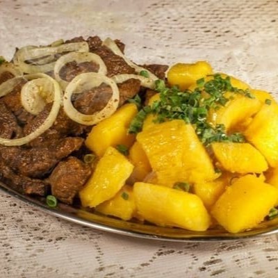 400 gramas de contra filé,800 gramas de batata frita