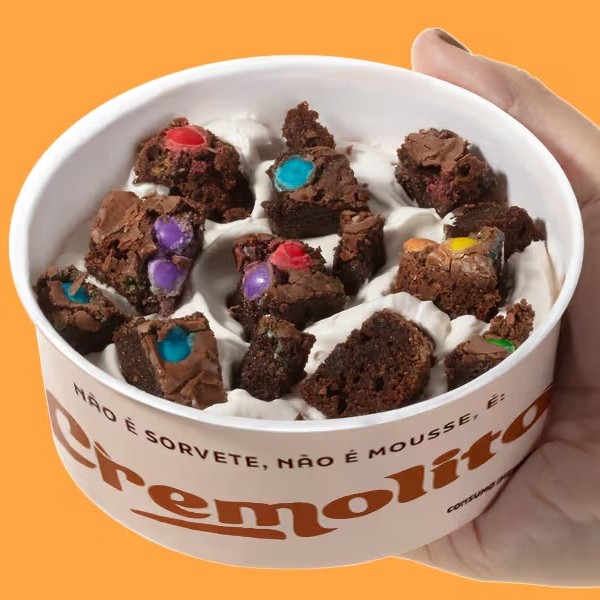Não é sorvete, não é mousse, é Cremolito. Um creme refrescante e super cremoso nos sabores baunilha ou chocolate, com pedaços de brownie à sua escolha, que derretem na boca. Sabor intenso, textura perfeita e a qualidade da Vó Alzira em cada colherada. Imagem meramente ilustrativa.