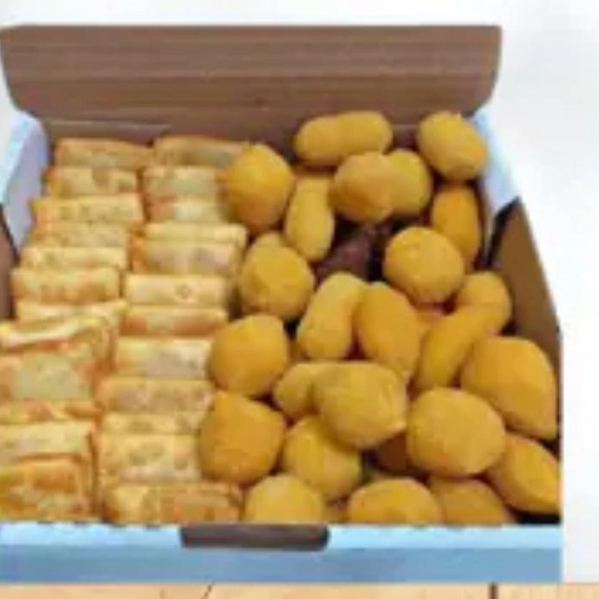 10 coxinhas, 10 quibes, 10 queijo com presunto, 10 bolinhas de queijo, 10 salsichas. Total 50 salgados. *(Os sabores podem sofrer alteração mediante a disponibilidade em estoque)