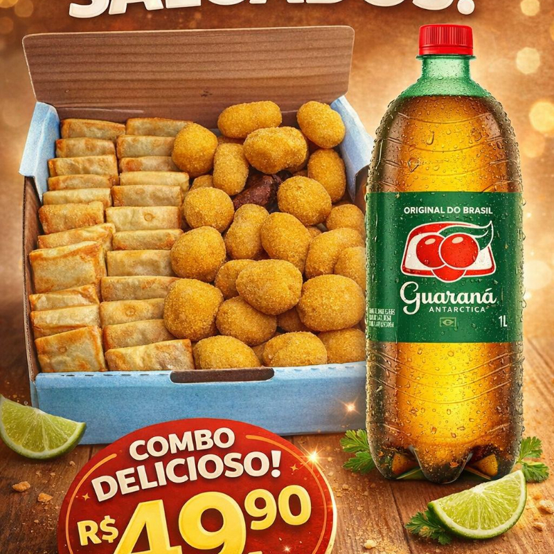 25 Salgadinhos + 15 Pastelzinho Misto + Guarana Antártica De 1 Lt
