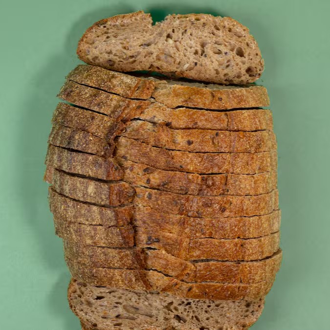 Esse Sourdough Integral é feito inteiramente com Farinha Integral da Fazenda Vargem e enriquecido com um Mix De Grãos selecionados, como gergelim sem casca, gergelim preto, gergelim integral, semente de girassol, linhaça dourada e linhaça marrom.