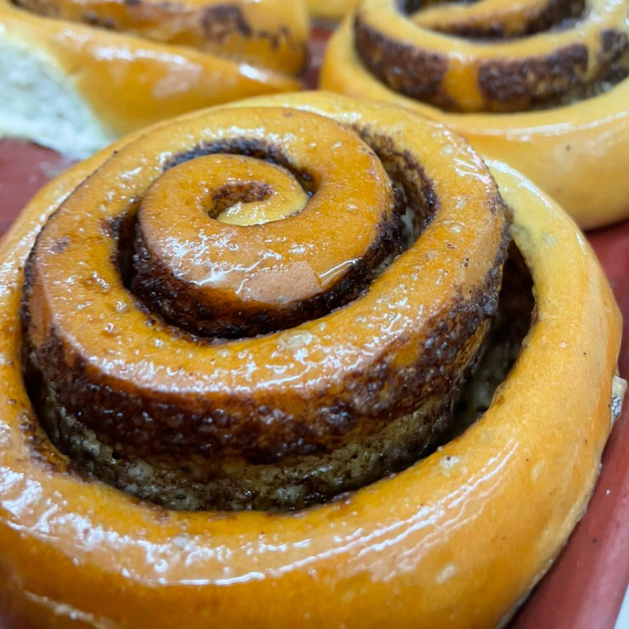 Nosso Cinnamon Roll combina uma massa leve e macia da fermentação longa com um recheio irresistível de açúcar mascavo e canela.