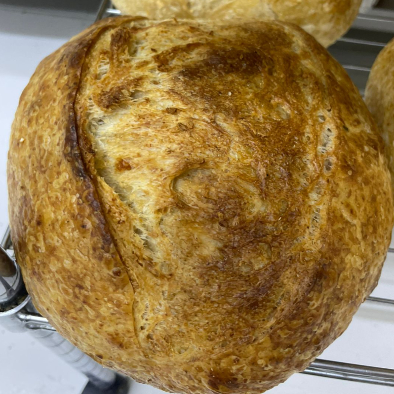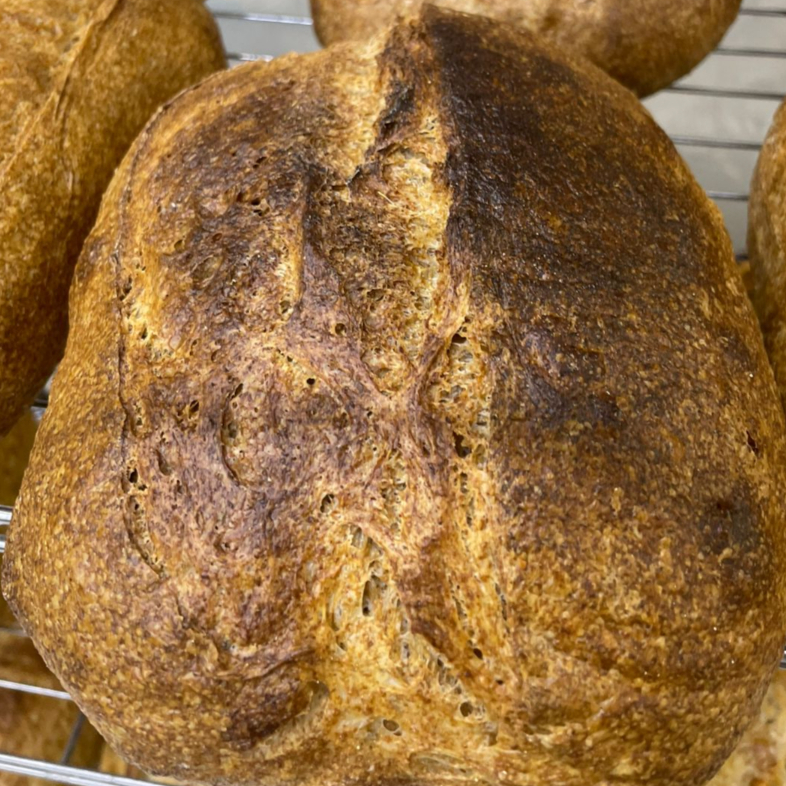 Esse pão Sourdough é feito inteiramente com Farinha Integral da Fazenda Vargem, garantindo um sabor robusto e uma textura mais densa e nutritiva.