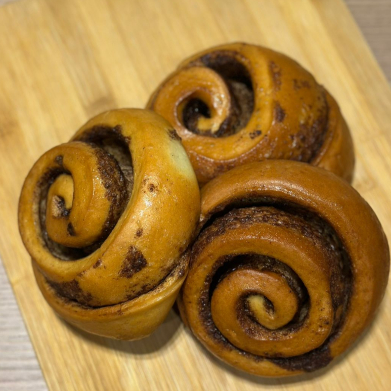 Nosso Cinnamon Roll na versão TRIO, combina uma massa leve e macia da fermentação longa com um recheio irresistível de açúcar mascavo e canela. Levemente adocicado e perfumado, ele é perfeito para acompanhar um café ou chá.
