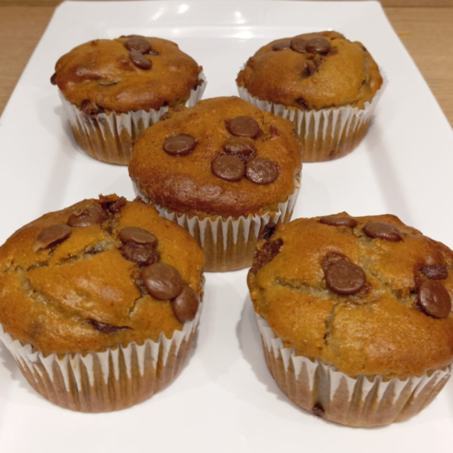 Este muffin combina a doçura da banana com o sabor intenso do chocolate 50%. Feito com óleo de coco e adoçado com xilitol, ele é uma opção saudável e saborosa para qualquer momento.
