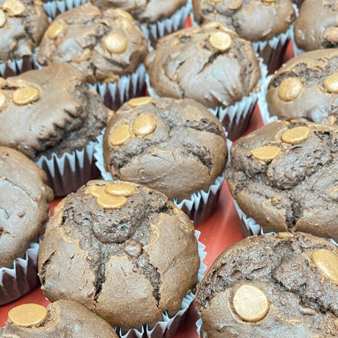 Um muffin super macio e intenso, feito com cacau e pedaços de chocolate meio amargo. Ideal para quem adora chocolate, ele tem uma massa leve e fofinha, com um sabor irresistível.