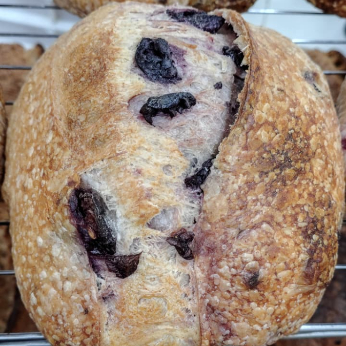 Descrição Este Sourdough com azeitonas Azapa traz o equilíbrio perfeito entre o sabor salgado das azeitonas e a leveza da massa. A combinação de uma casca firme e crocante com o miolo macio faz deste pão uma escolha versátil, ideal para ser servido com azeites, queijos ou como parte de uma refeição especial. 0