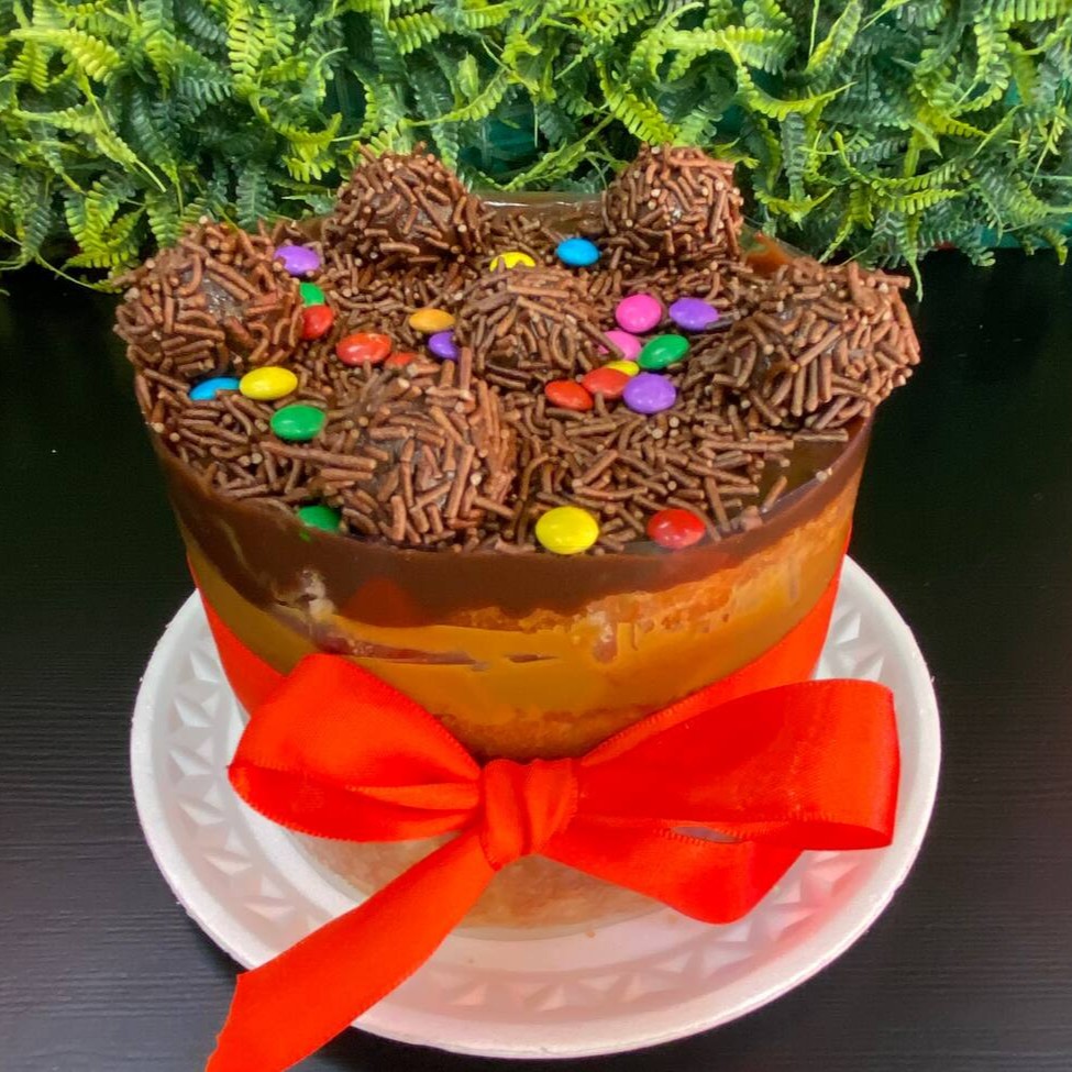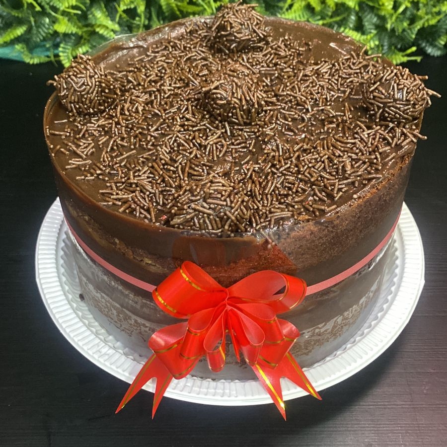 Delicioso bolo com massa de chocolate caseira, macia e bem molhadinha, coberto com cremosa cobertura de chocolate ao leite, que traz ainda mais sabor e cremosidade. Finalizado com granulado, dando o toque clássico e irresistível para os amantes de chocolate.