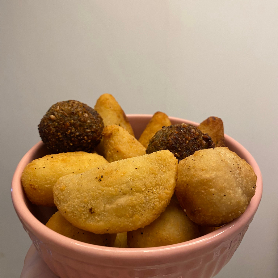 Salgadinho bem grandinhos e bem caprichado, vai sortidos e congelado.