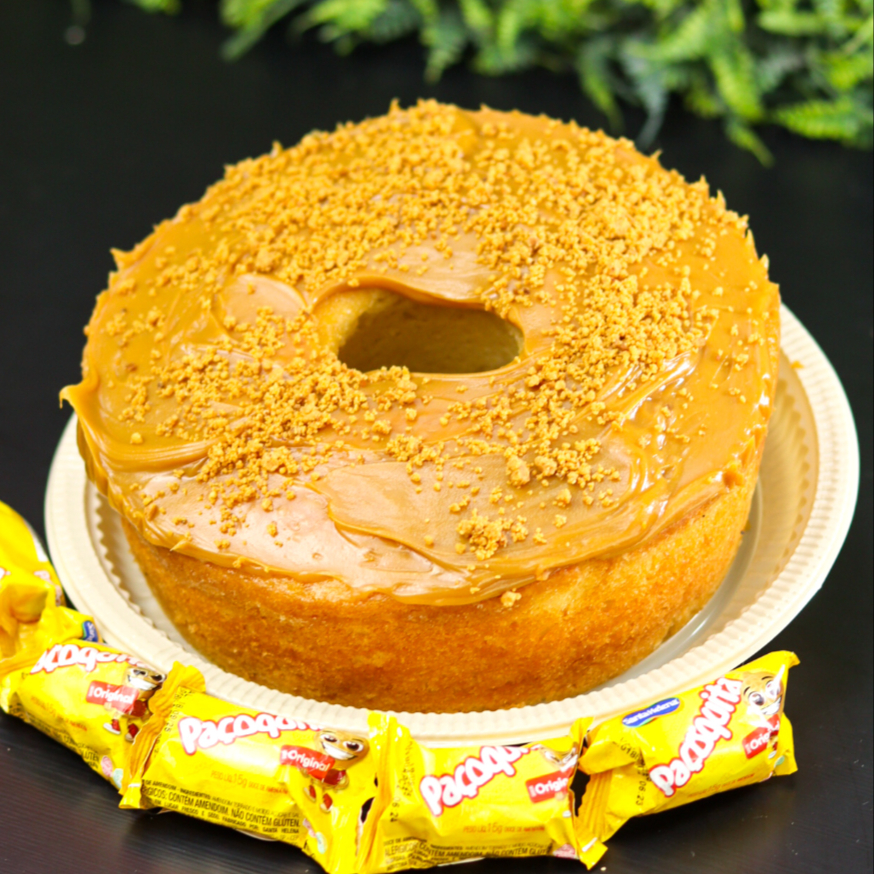 Delicioso bolo caseiro com massa macia e bem molhadinha, com o sabor marcante da paçoca. Finalizado com doce de leite e paçoca por cima, trazendo ainda mais cremosidade e aquele toque irresistível de amendoim.