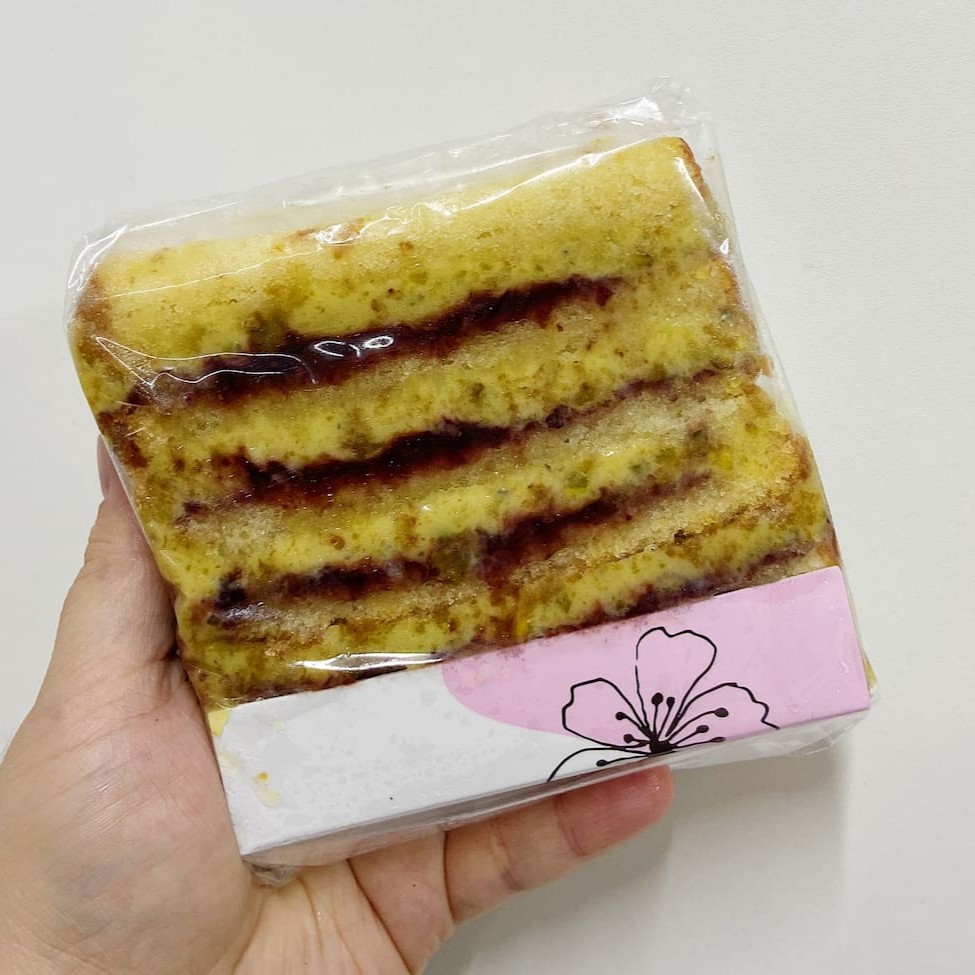 Bolo de baunilha com brigadeiro de pistache e geleia de frutas vermelhas.
