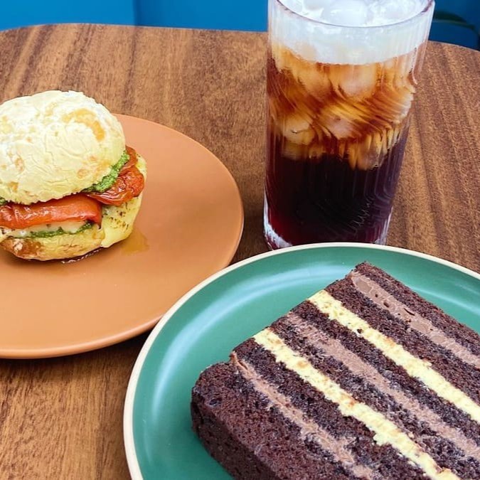 - 1 Bolo Recheado - 1 pão de queijo recheado - 1 café gelado ou Soda