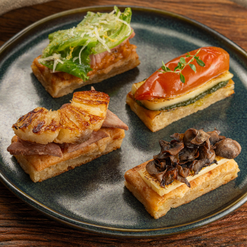 Tapas de pão de queijo em 4 unidades - Pernil com Abacaxi / Caprese / Mix de Cogumelos / Chique no Último