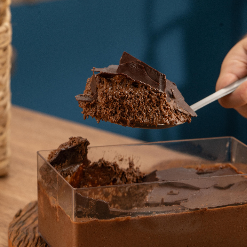 A clássica receita francesa sem adição de açúcar. Servido com lascas de chocolate, azeite, extravirgem, e pitada de sal. Surpreendentemente delicioso!