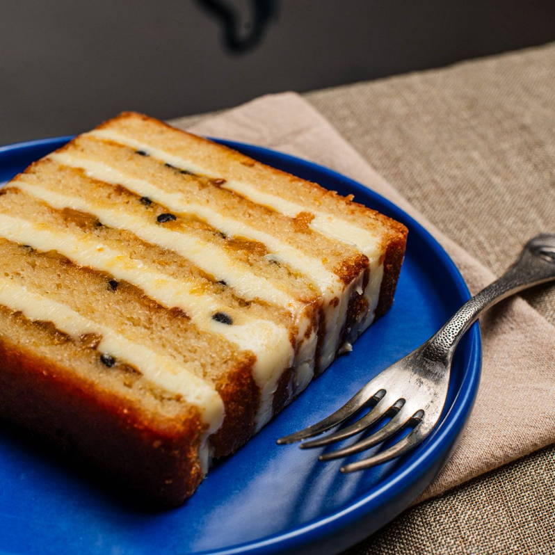 Bolo de laranja com creme 4 leites e geleia de manga e maracujá