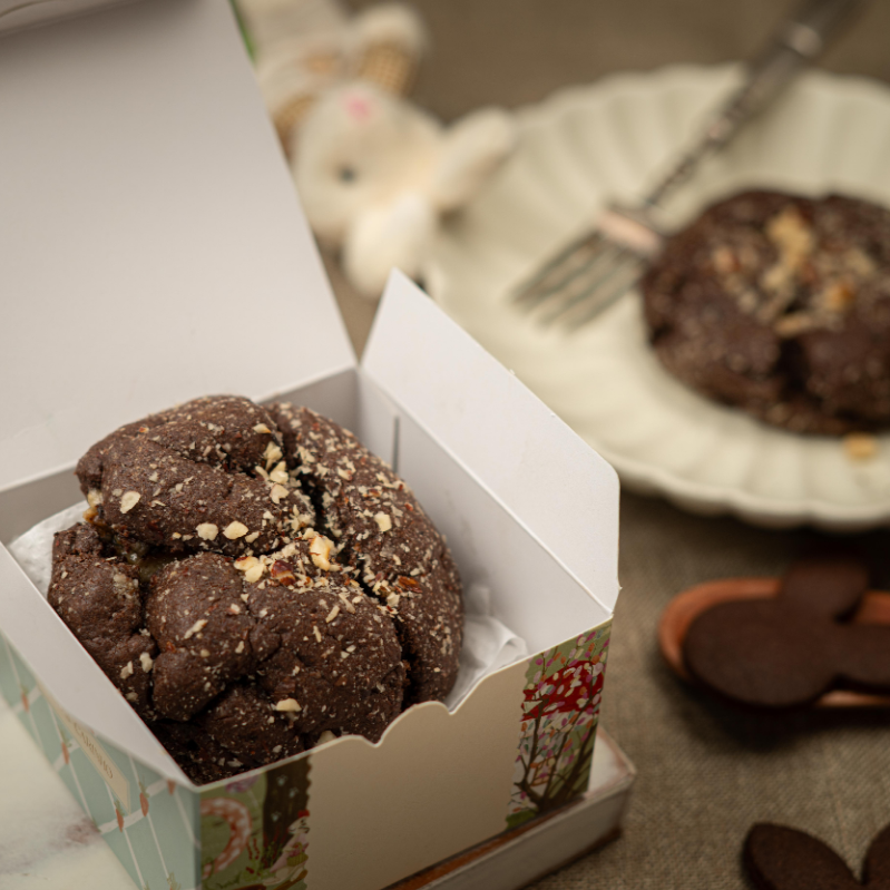 Cookie massa black coberto de avelãs com recheio de nutella branca feita na casa. Gosti