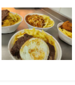 Feijão, arroz, macarrão, farofa, bife, ovo e Fritas