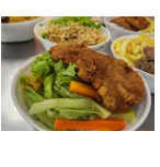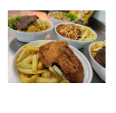 Feijão, Arroz, Macarrão, Farofa, Frango Milanesa e Fritas