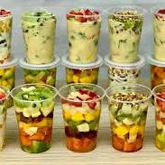 Filé de frango empanado crocante assado ao forno, acompanhados de legumes crocantes salteados no corte julienne ao molho teryiaki, finalizado com gergelim, salada de batata assada com ovos e azeite.