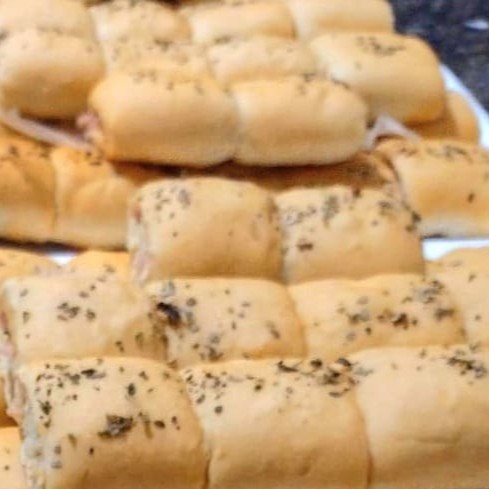Bandeja com mini hamburguinho congelados, só aquecer no forno.