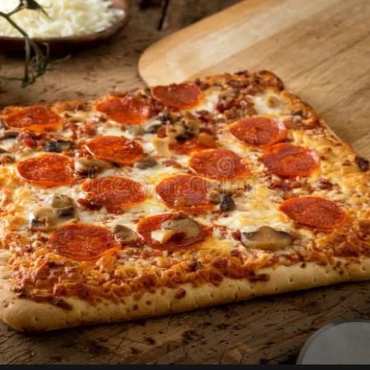 Pizza Quadrada Gourmet (40cm) Uma pizza gigante, perfeita para compartilhar e matar a fome de todo mundo! Feita em formato quadrado de 45cm, chega à mesa com muito recheio, massa macia por dentro e crocante por fora. Ideal para reunir a família, os amigos ou aproveitar momentos especiais com muito sabor em cada pedaço.
