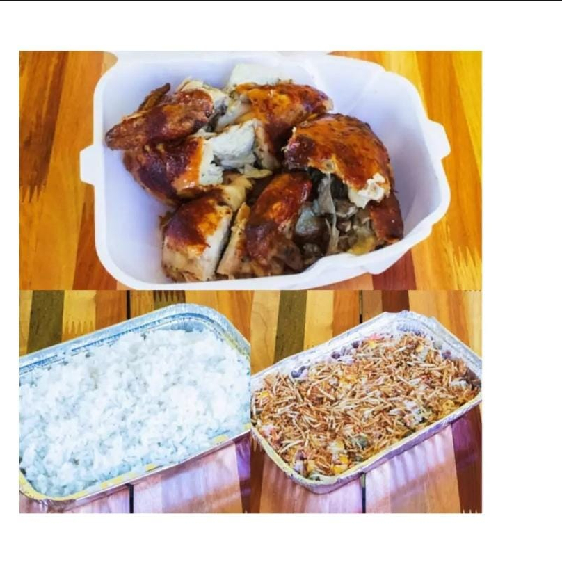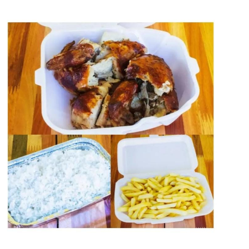 Arroz , feijao , farofa , fritas 2 pedaços de nosso delicioso frango