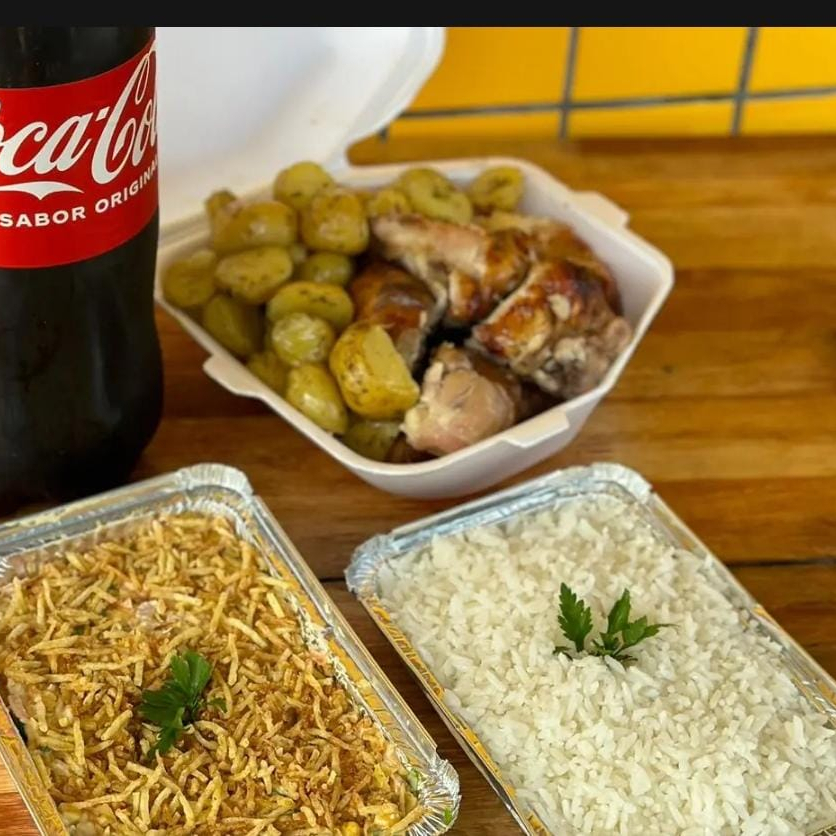 7-frango C Batata Farofa, Arroz, Salpicão E Refri Coca-cola