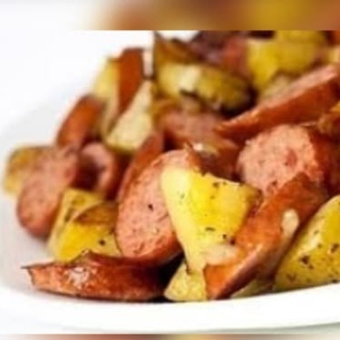 Porção de batata frita + batata calabresa + 3 linguiça toscana. Uma deliciosa mistura de textura e sabores.