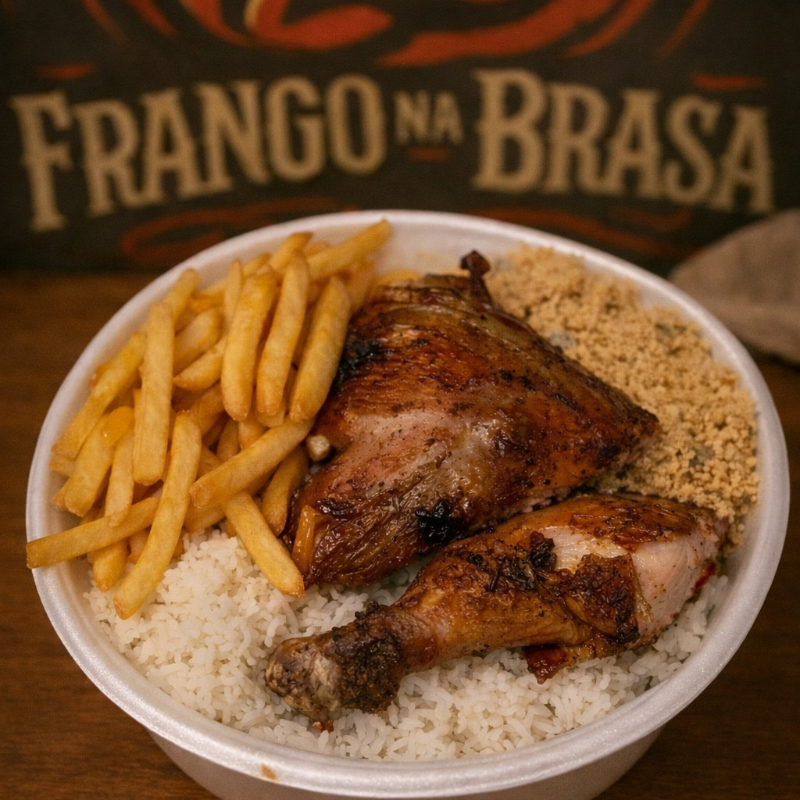 Acompanha Arroz, Feijão, Farofa, Fritas e Salada